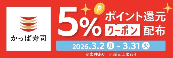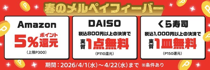 | 特典 | ①半額クーポン(上限1,000円) ②P1,000 |