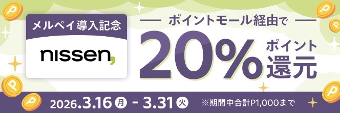 | 特典 | 購入金額30%ポイントバック (上限P2,000) |