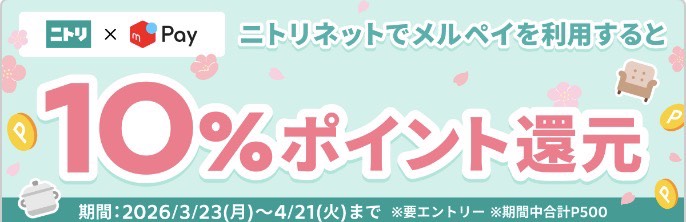 期間中、ヤマダウェブコムでの買い物をエントリー後メルペイで支払うと10%割引されます。