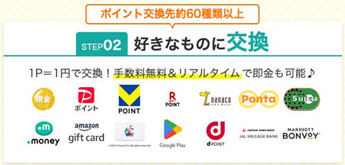 - 特徴②:貯まったポイントの交換先は約50種類!