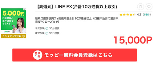 かずたとえばLINE FXでは15,000P、Oliveでは5,000P、moomoo証券では10,000Pと、かなり高額のポイントがもらえます!