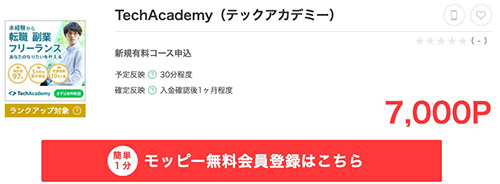 ゲーム・アプリ案件は、テックアカデミーで7,000P、オーディオブックで1,000P、TEMUで新規商品購入の50%分のポイントがもらえます。