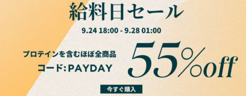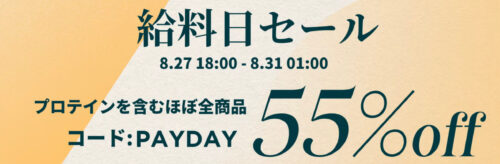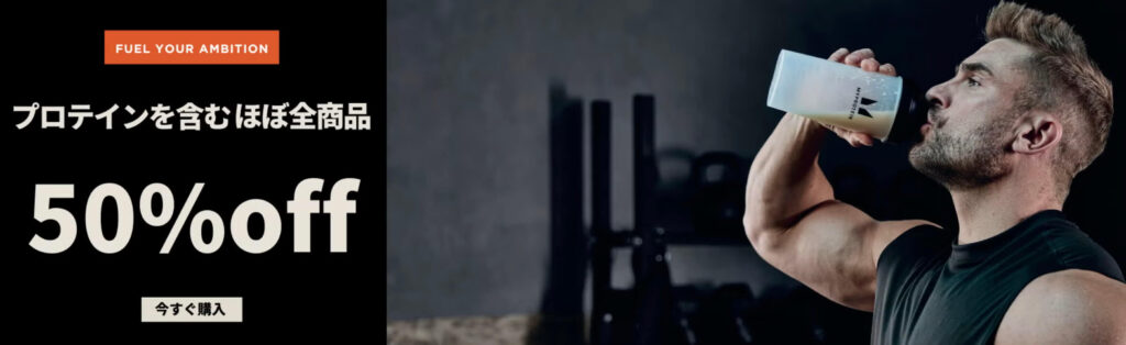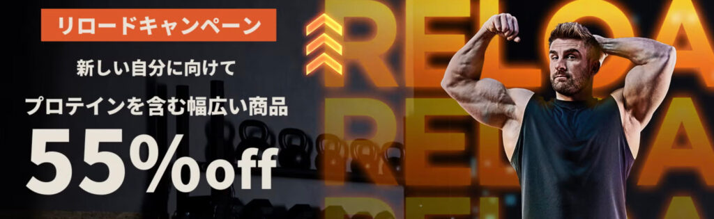 プロテイン含めるほぼ全商品が55%OFFでご注文いただけます。