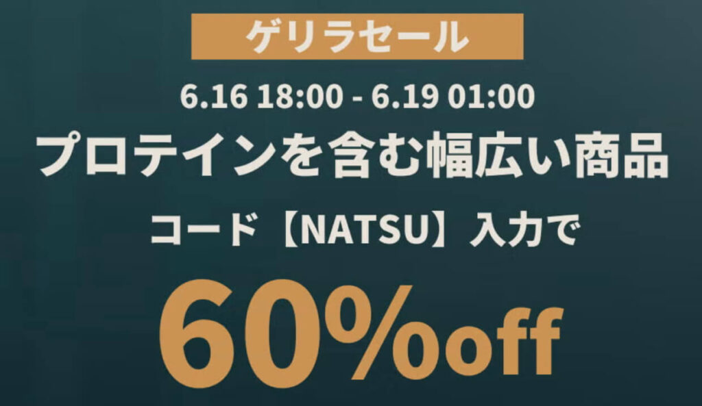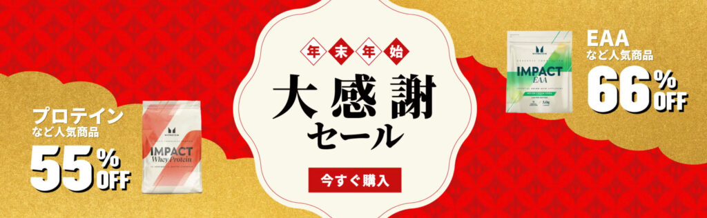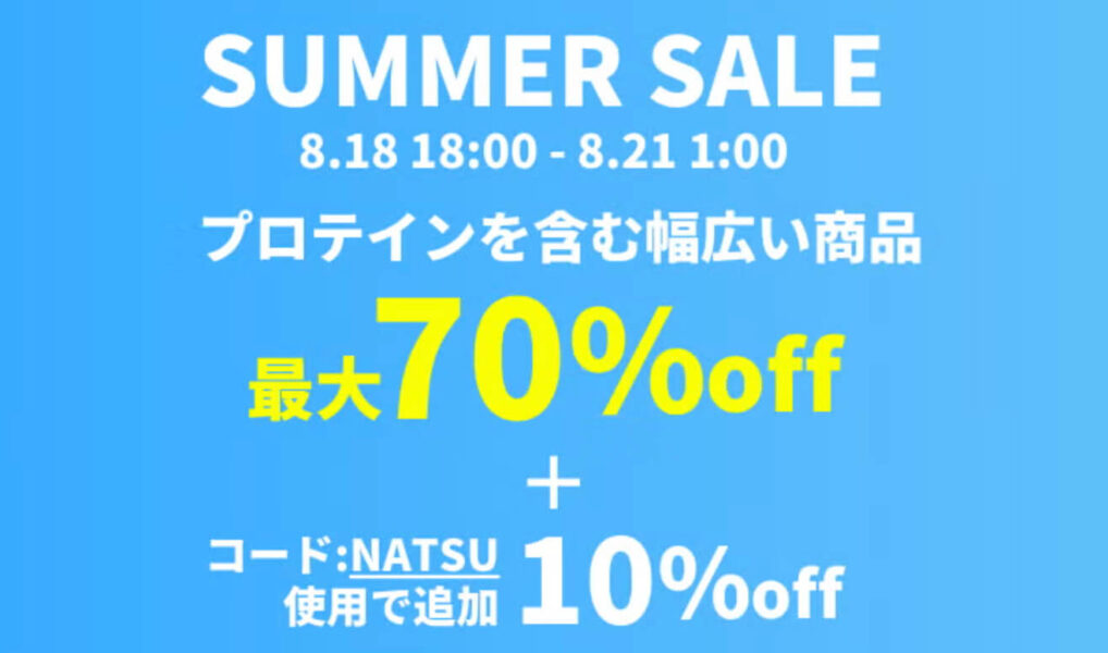期間中、プロテインやアミノ酸などの対象商品が最大80%OFFでご注文いただけます。