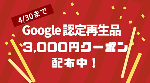 Google 認定再生品に使用できる3,000円引きクーポン【25/4/30まで】