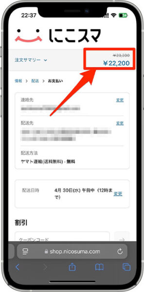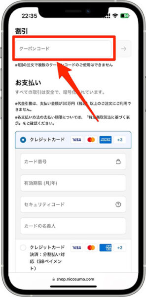 にこスマのクーポンを利用する際は、クーポンコードは正しく入力し、確定する前に再度チェックするようにしてください。