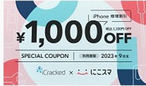 にこスマでは、定期的に修理時に使える『1,000円OFFクーポン』を配布しています。