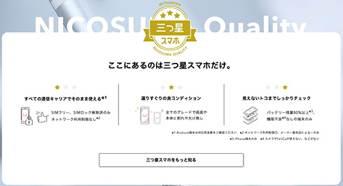 かずにこスマのスマホは細かい部分まできちんとチェックし、問題がないと判断された『三つ星スマホ』のみを販売しています!