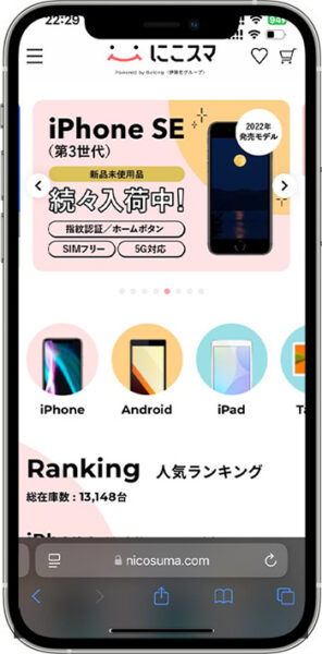 ネットで中古のiPhoneやAndroid、iPadなどが購入できる『にこスマ』は、店舗に行く必要がなく手軽に中古スマホを購入できると人気があります。