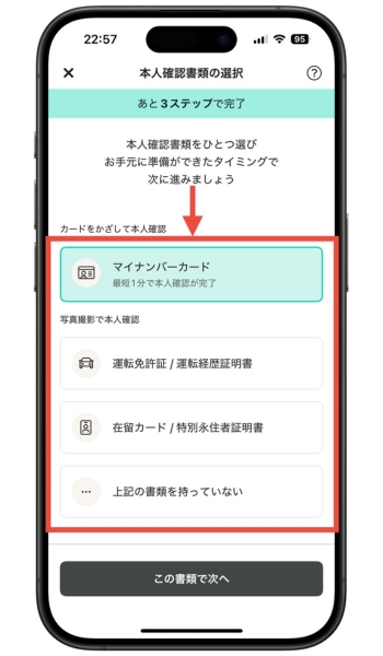 - 提出する本人確認書類を選びます。