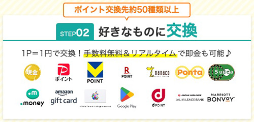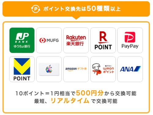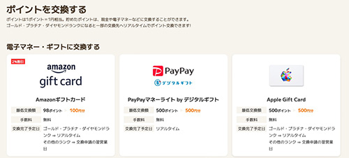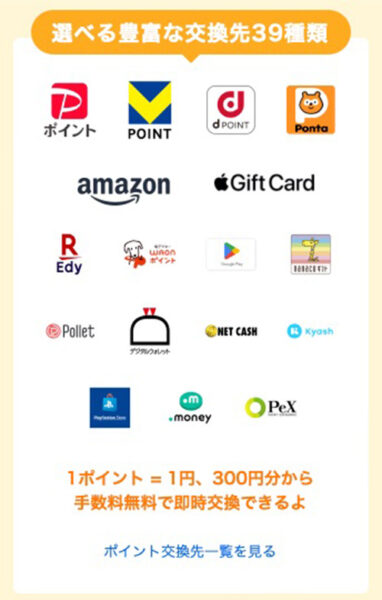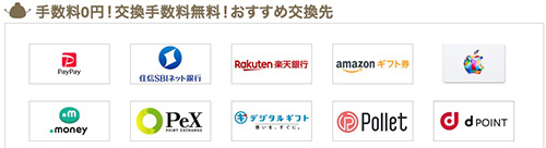 交換できるポイント一覧