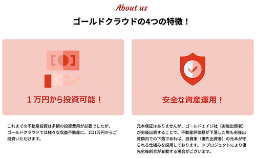 - 低資金から始めたいなら一口1万円スタートがおすすめ