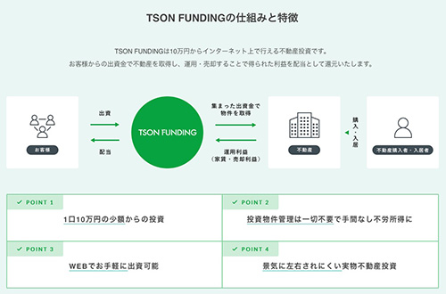 | TSON FUNDING (ティーソンファンディング) | 匿名組合型ファンドと 任意組合型ファンドから選べる |