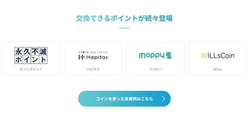 | RIMPLE(リンプル) | 他社のポイントを使って 現金同様に出資できる |