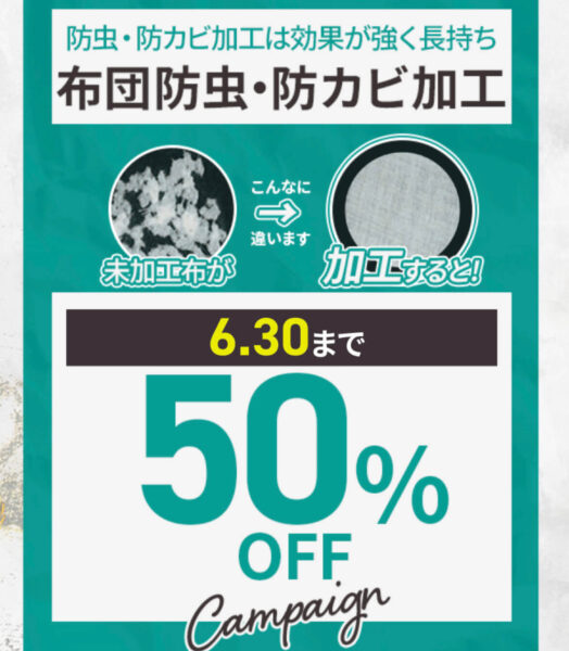 せんたく便の期間限定の汗抜き加工50%OFFキャンペーン!