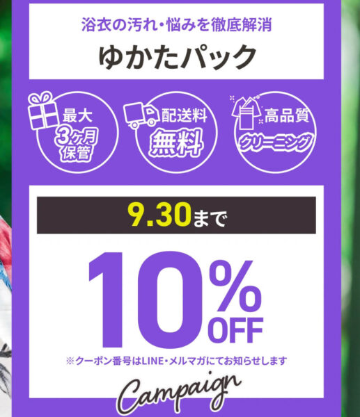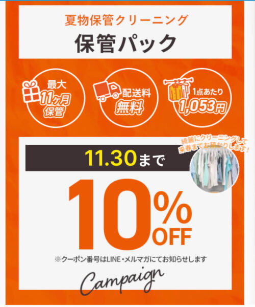 せんたく便では、保管パックを利用すると10%OFFになるキャンペーンを開催しています。