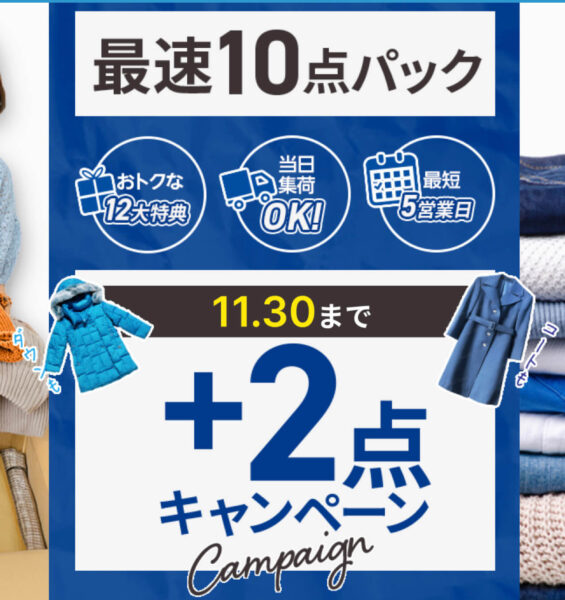 せんたく便の期間限定の最速10点パックに2点プラスキャンペーン!