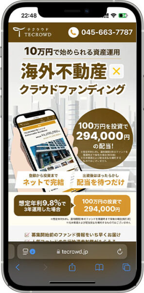 本業があるとなかなか手を出せない投資商品ですが、TECROWDなら海外物件のファンドを選び、あとは運用終了まで待つだけです。