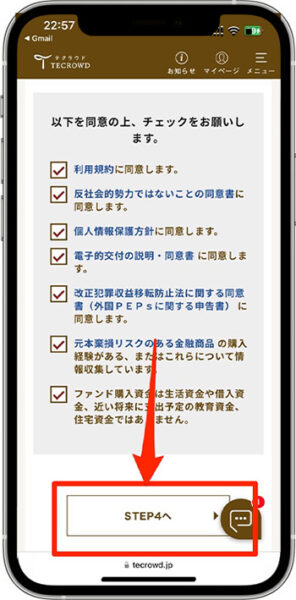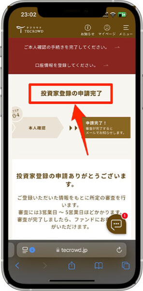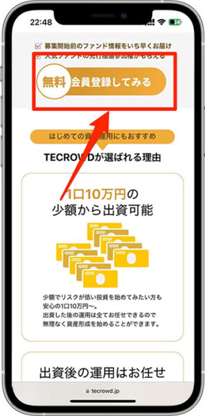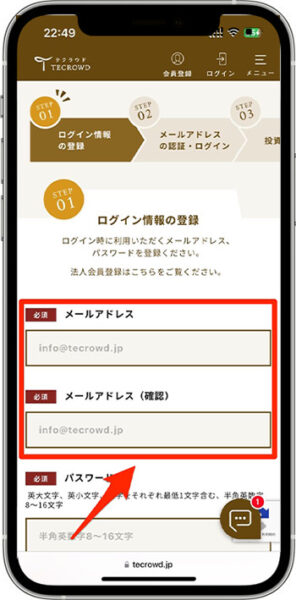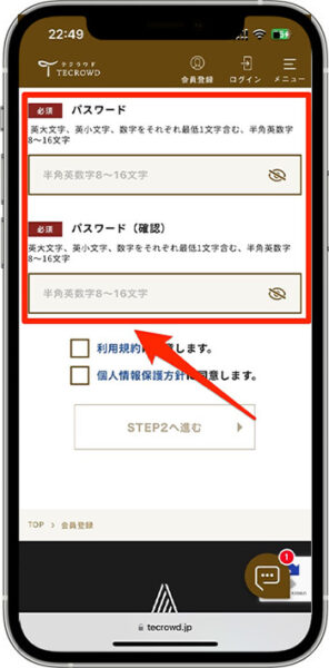 TECROWDのキャンペーンで新規登録する流れは上記の通り。
