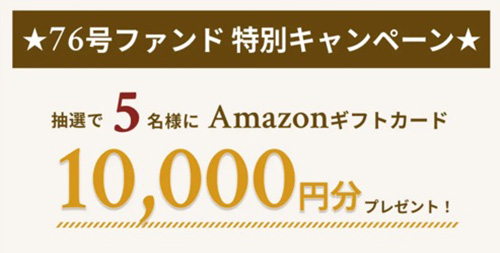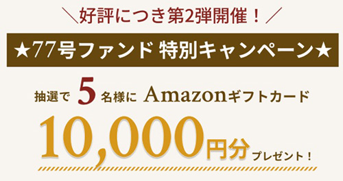 TECROWDでは過去に、77号のファンドに出資すると、抽選で5名にAmazonギフト券が当たるキャンペーンを実施していました。