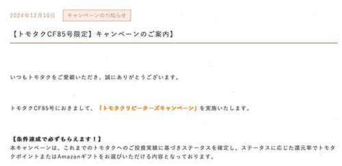 - トモタクのキャンペーンに参加する際は開催期間や条件などに注意