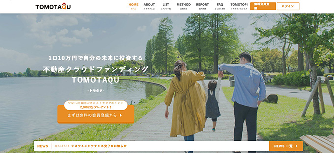 トモタクは一口10万円から投資できる不動産クラウドファンディングで、お得なキャンペーンや友達紹介キャンペーンを随時開催しています。