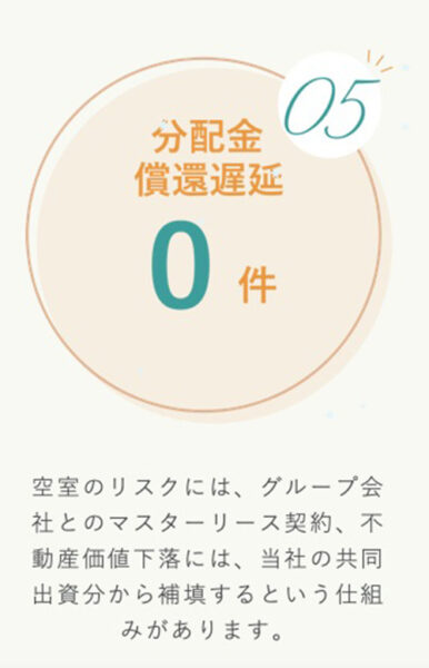 このような対策により、できる限り出資者の利益が損なわれないようになっているので、分配金返金遅延は0件との実績があるのです。
