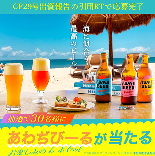 | 特典 | 抽選で30名にあわじビール6本セット |
