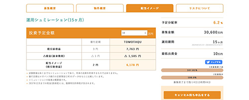 累計募集金額は100億以上、運用中の金額は40億以上と、申し分ない運用実績を持っていることがわかります。
