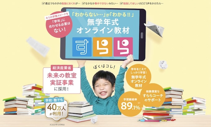 そんな方には学年を問わずに自分のペースで勉強ができる『無学年式オンライン教材』があるすららがおすすめです。